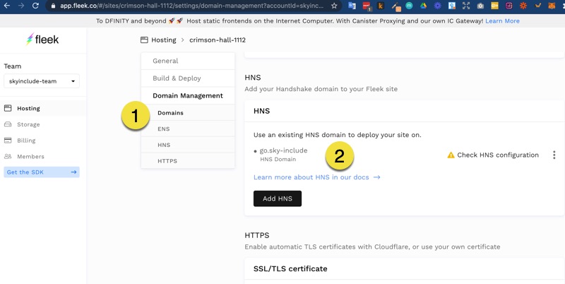 Using Fleek IPFS Hosting For Your Handshake HNS Domain Name